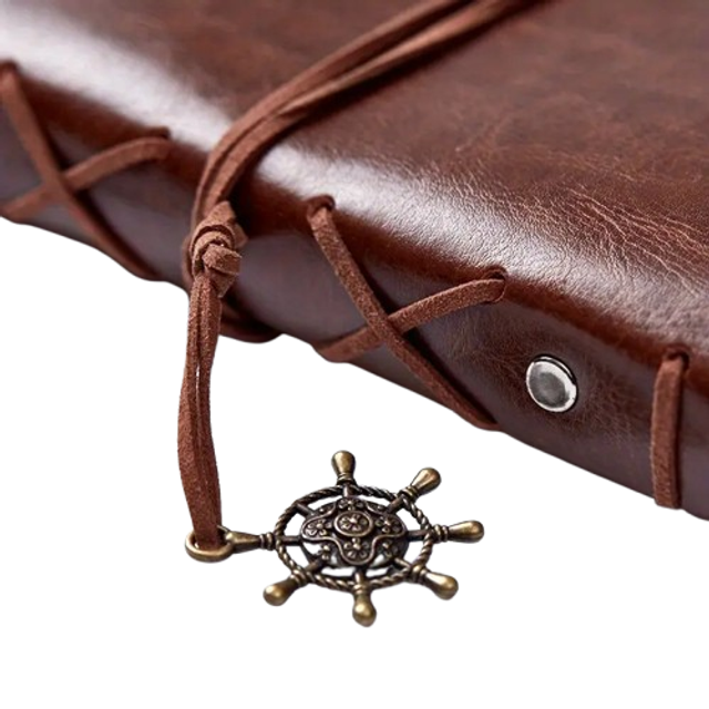 - Design vintage unique : couverture en similicuir décorée d’une élégante boussole nautique, rappelant l’univers marin et les navires pirates.