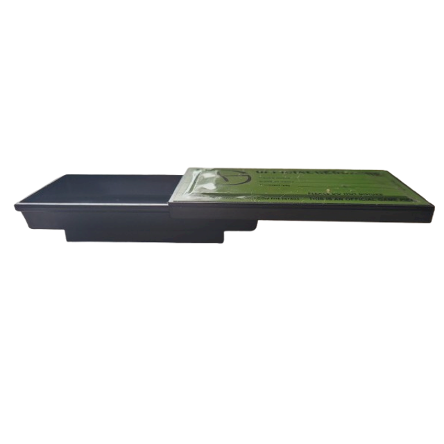 Conteneur magnétique noir. Un aimant puissant est fixé sur le dos. Le couvercle se ferme solidement et ne glisse pas une fois placé. Le logo en vinyle sur le couvercle permet d'y écrire les informations utiles de la cache et de son propriétaire.