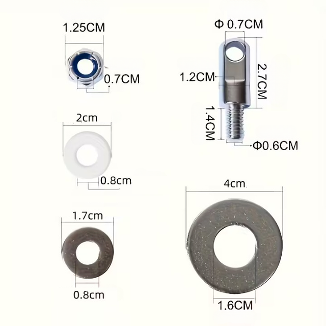 - Ecrous auto-freinés + rondelles souples pour éviter tout desserrage avec le temps.