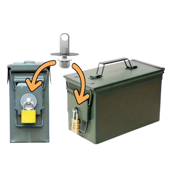 Ce kit de verrouillage est spécialement conçu pour transformer vos boîtes à munitions (ammobox calibres 30 et 50, ainsi que divers formats similaires) en caches géocaching sécurisées. Il permet d’ajouter facilement un cadenas afin de contrôler l’accès et protéger vos logbooks ou objets d’échange.