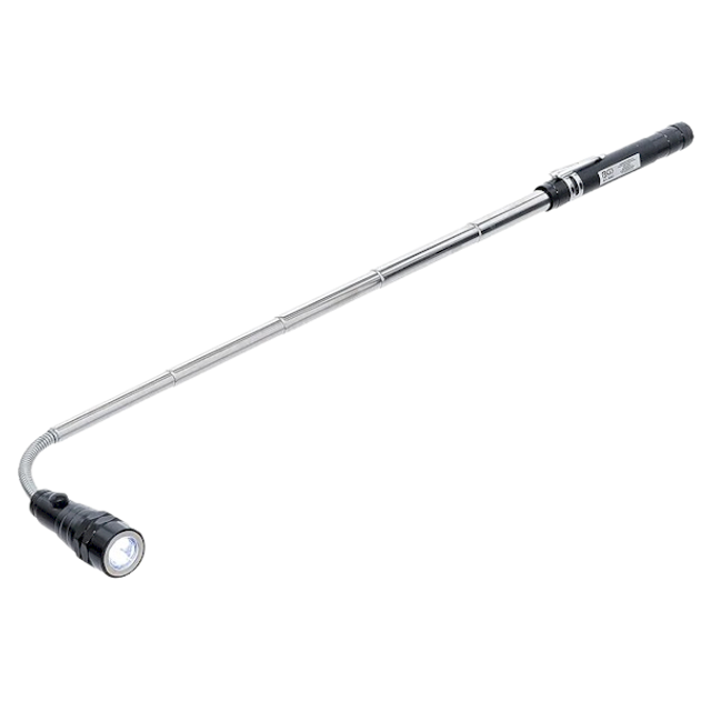 Atout supplémentaire : grâce à son embout magnétique, cette lampe se transforme en tige télescopique de 50 cm, parfaite pour récupérer des caches métalliques inatteignables autrement.