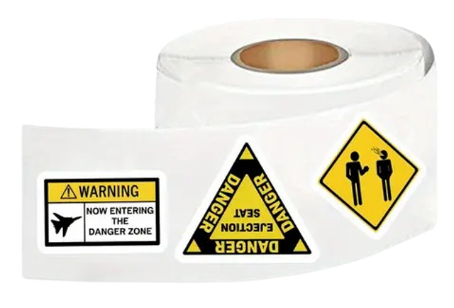 - Format malin : stickers ± 2,4 cm, design "danger" sur fond contrasté pour un effet marquant.