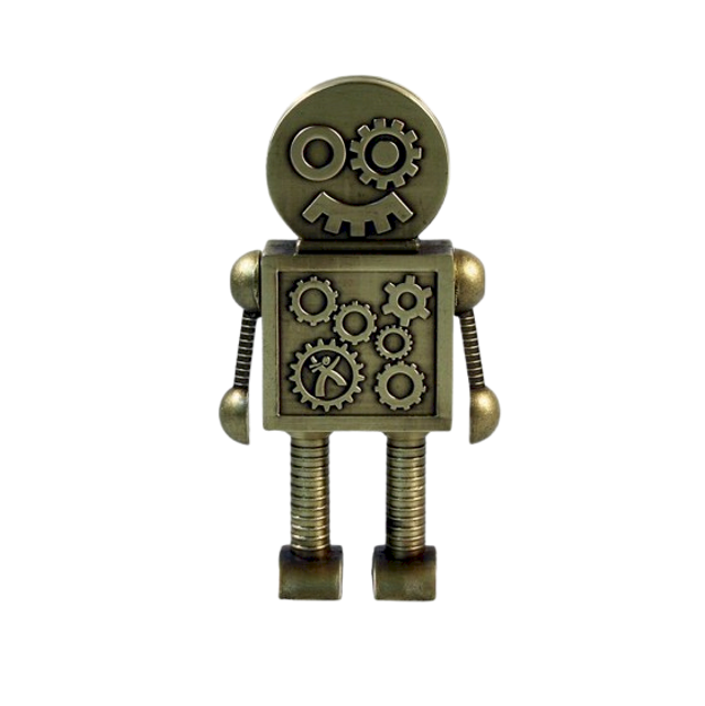 Directement venu du futur, ce robot au design steampunk est un Geocoin officiel de Geocaching.com. Même le siège de Groundspeak ignore ses véritables origines… Ce petit explorateur métallique est prêt à partir à l’aventure grâce à son code traçable unique, utilisable sur Geocaching.com.