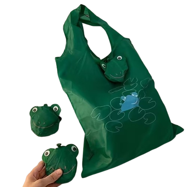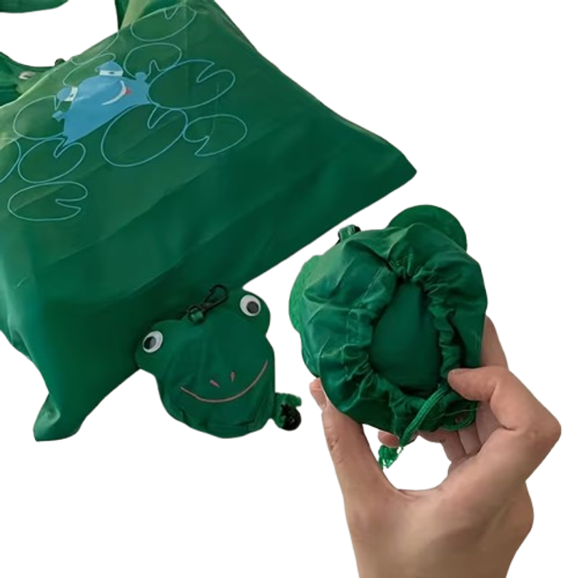Parfait pour les amateurs de géocaching, ce sac réutilisable imprimé en vert avec une jolie grenouille est l’allié idéal pour partir à la recherche de caches, transporter ton matériel ou ramasser quelques trésors en chemin.