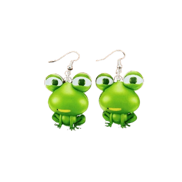 Ces adorables boucles d'oreilles en forme de grenouille ne passent pas inaperçues ! Avec leur design 2D en acrylique, leurs gros yeux curieux et leur silhouette rigolote, elles apportent une touche d'humour et de fantaisie à n'importe quelle tenue.