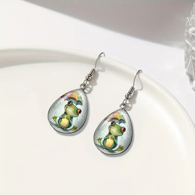 Craquez pour ces adorables boucles d’oreilles “Grenouille tenant un parapluie”, faites main en verre, au design délicat façon goutte de pluie. Un brin de fantaisie qui égayera à coup sûr votre quotidien !