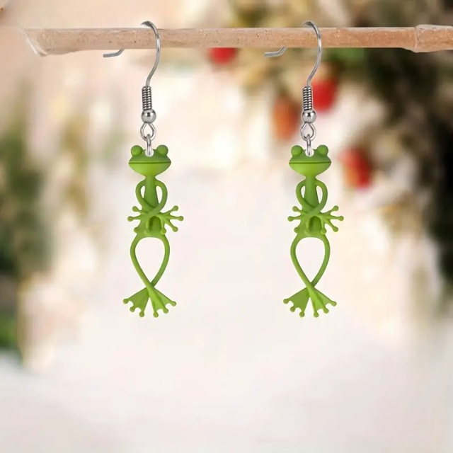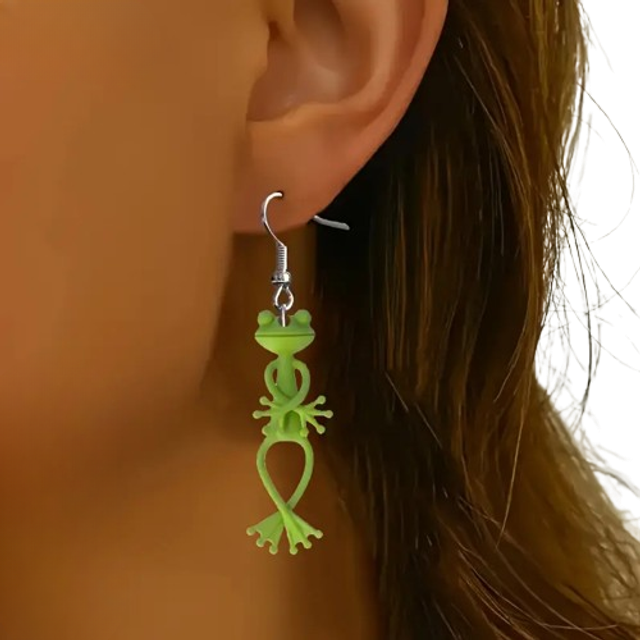 Découvrez ces adorables boucles d’oreilles plates en 2D représentant une petite grenouille aux longues pattes. Fabriquées en acrylique léger et résistant, elles sont idéales pour apporter une touche de fantaisie à vos tenues du quotidien.